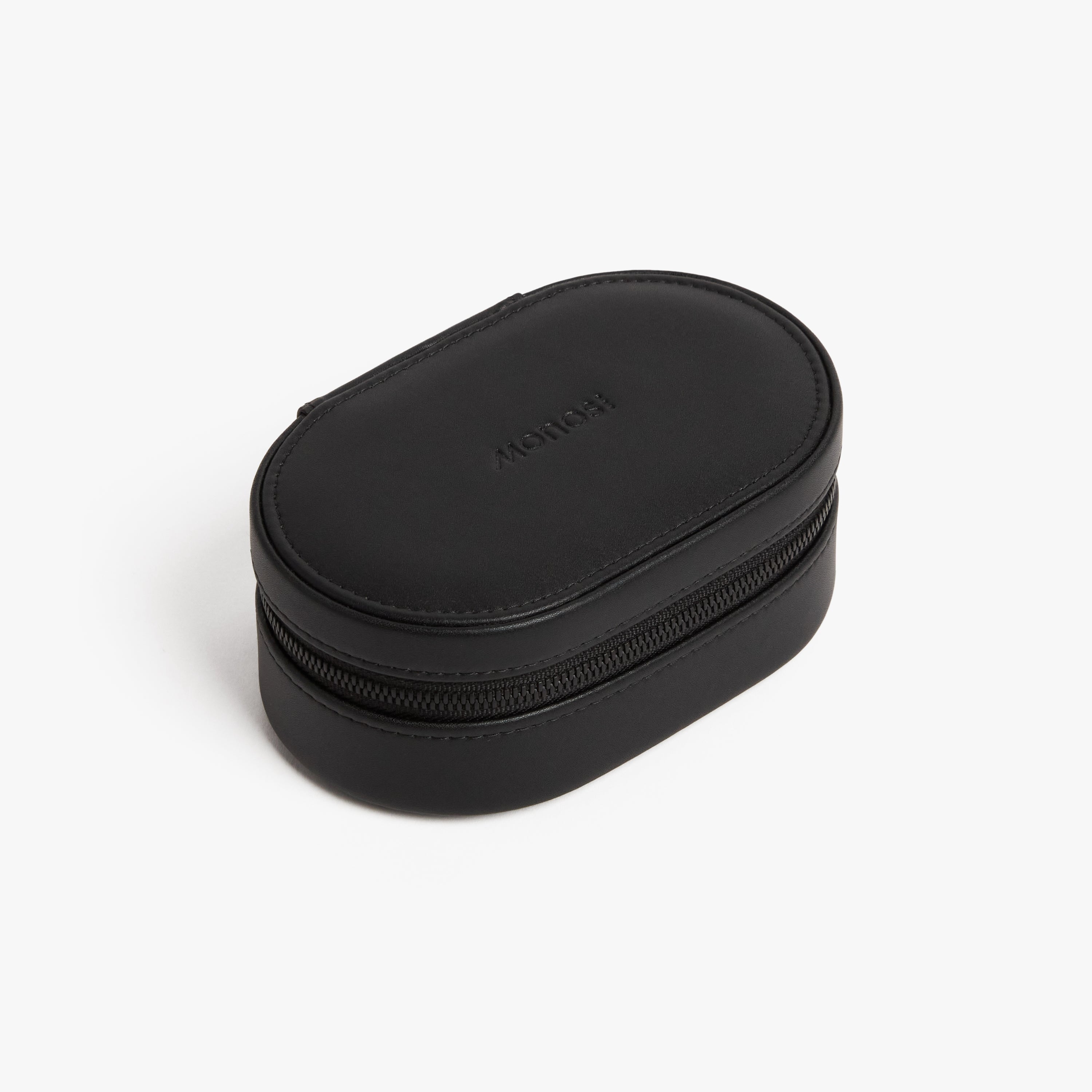 A modular design with removable components allow for versatile packing – remove the earring and ring panels to suit your needs. A small vegan leather pouch is also removable: perfect for the minimal traveller looking to store just a few key accessories.